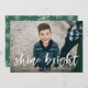 Modern Shine Bright Script Green Photo Holiday Card