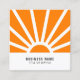Customize this stylish modern both side print square business card, featuring an image logo of an orange sunset sun with sun rays on a white background. On a front side is a place for your name or business name and a title and the back side has all your contact information on an orange background.