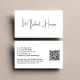 Professional minimal modern business card with your name in a stylish signature script on the front and your contact information (such as email, telephone numbers, firm name and mailing address) in clean, simple typography on the back. Add your website's URL address to create a scannable QR code.