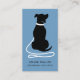 Simple and modern dog walking and pet sitting business card features blue card with black dog silhouette with dog leash.