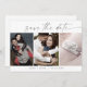 This modern silver 3 photo template save the date card is perfect for a minimalist wedding. The simple silver gray color design features unique industrial lettering typography with modern boho style. Customizable in any color. Keep the design minimal and elegant, as is, or personalize it by adding your own graphics and artwork.