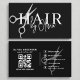 A bold black business card accented with sleek silver scissors, modern typography, and a scannable QR code on the back for instant booking or social media. Perfect for hair stylists and beauty professionals who want a stylish, high-contrast, and professional card with a contemporary edge.