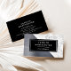 Modern, trendy design features simple white lettering in a black rectangle, against a dramatic background of white marble and silver faux brushed metal foil. Add your contact information on the reverse in white sans serif font on a solid black background.