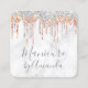 Modern silver copper marble glitter drips manicure square business card