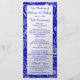 This beautiful wedding program features your details on pure silver framed with a classy floral motif in silver on a contrasting royal blue background. You can fully personalize with the customize link. This is part of an elegant wedding suite that includes an invitation, envelope, menu and many other items.