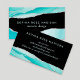 Make a good impression with a chic business card that shows your uniqueness, elegance, creativity and appreciation of the beautiful. This modern business card features watercolors of teal mint green agate geodes with veins of faux silver glitter against a black background. Your name and details are in a simple light teal typography.