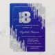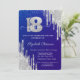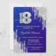 Modern Silver Glitter Drips Blue 18th Birthday Invitation