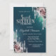 Modern Silver Glitter Drips Flowers Sweet 16 Invitation