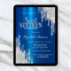 Modern Silver Glitter Drips Metallic Blue Sweet 16 Invitation