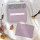 The inside of this elegant modern wedding invitation envelope features a silver faux glitter design on a dusty lavender purple background. Customize the back flap with the names of the bride and groom in white handwriting script and return address in copperplate font on a dusty lavender background.