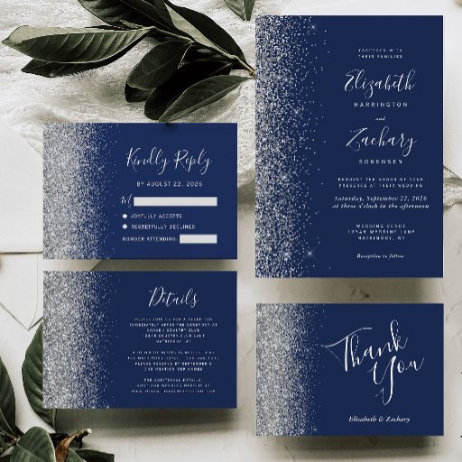 Navy Blue Silver Glitter Wedding SuiteDesigned by Akhates Designs
