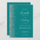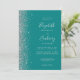 Modern Silver Glitter Teal Blue QR Code Wedding Invitation