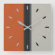 Modern Silver Gray Navy Orange Red Stripe Pattern Square Wall Clock