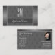 Modern Silver Gray Stylish with Monogram and Photo Business Card