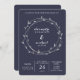 Modern Silver Leafy Circles Midnight Blue Wedding Invitation