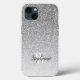 Add a glam touch to your phone with this chic phone case, featuring a background pattern of silver ombre faux glitter. Personalize it with her initial in white serif font and her name in charcoal gray handwriting-style brush script.