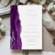 The left-hand edge of this elegant modern wedding invitation features a purple watercolor agate border trimmed with faux silver glitter. The customizable text combines handwriting, copperplate and italic fonts in real silver foil on a white background. The reverse side features a matching purple and silver agate design.