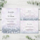 Plain white envelopes are included with paper invitations and will come to fit the invitation size you select. If you don’t need the envelopes, you may choose to not receive them by selecting the dropdown below "Envelopes" and choosing "None." If you’d like to have a design on your envelopes, you can browse all of these available envelopes to find the design that complements your Modern Silver Purple Glitter Script Wedding Invitation.
