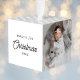 Custom-designed baby's first Christmas cube ornament featuring modern simple design with custom photos.