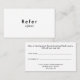 Modern simple black and white referral card. An elegant design that projects a confident company image. Perfect for a wide range of professions including; spas, beauty treatments, hair and beauty consultants, stylists, makeup artists, beauticians, hairstylists, personal trainers, to name a few! Personalize by adding your contact information on the reverse with your special discount offer. Designed by Thisisnotme©