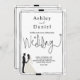 This elegant black-and-white wedding invitation is perfect for a modern wedding. The simple design features elegant black calligraphy, a chic black frame, and a bride-and-groom illustration on a clean white background. The invitation card includes the wedding details on the back instead of paying for a separate enclosure card.