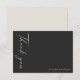 These modern minimalist 5" x 3.5" wedding thank you cards feature the greeting, "thank you," on the front in ivory lettering on a black background, with a placeholder for the wedding couple married name. The back is intentionally blank for personal messages.
