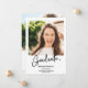A modern, simple black and white graduate script brush with 2 photos graduation announcement. Add your message at the back.