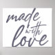 Simple, playful, elegant graphic design of a saying "Made with Love" in grey color. Powerfu, bold handwritten, calligraphic typography.