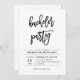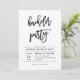 The brushed script font adds a touch of elegance and personality to the invitation, while the simple design creates a sleek and contemporary look that is perfect for a bachelor party. The font is printed against a white background, creating a bold and stylish contrast.