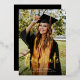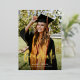 This graduation announcement features a large, full front photo with modern calligraphy overlay and a second photo on the back. The back elements can be removed by clicking the button to edit further.
