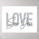 Modern, simple, minimal typographic design of a saying "Love San Jose" in tones of gray color. Cool, urban, trendy and playful graphic art with handwritten typography.