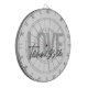 The personalized dart board will be perfect for my daughter's game room in their new house! It was packaged well and arrived with no damage. It is rather sturdy. Because of the weight, I am going to recommend they use an anchor bolt to secure it or nail into a stud behind the drywall. The printing turned out exactly like I saw it on the preview.