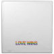 Modern, colorful, vibrant typographic graphic design of saying "Love Wins" in rainbow flag colors. Simple, bold, vibrant and urban graphic art.