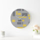 Modern, simple, cool geometric yellow gray pattern large clock