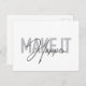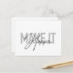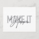 Modern, simple, minimal typographic design of a saying "Make it happen" in tones of grey color. Cool, urban, trendy graphic vector art with handwritten typography.