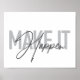 Modern, simple, minimal typographic design of a saying "Make it happen" in tones of gray color. Cool, urban, trendy graphic vector art with handwritten typography.