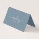 signature chic typography dusty blue business card with a classy touch with your general name in a calligraphy fancy font and your profession contained within it in front, your full name in calligraphy side tailed fancy font, career, and full details in left side of back.