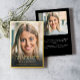 This is a modern and elegant high school graduation announcement in real gold pressed foil using a simple but classic font along with a single minimalistic photo on the front with an elegant gold frame border. The reverse side includes a message that you can personalize, along with another photo. Please contact the designer for any queries related to this design.