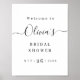 Modern script bridal shower welcome sign in black and white, simple and elegant.