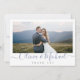 Modern script couple's names in blue color, with couple's photo, simple and elegant. Great thank you cards for modern wedding and other events.