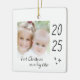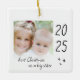 Modern "first Christmas as a big sister" ceramic ornament with a simple design featuring the year and a custom photo. Double-sided design.