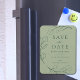 Sage green modern simple eucalyptus leaves wedding save the date invitation magnet. A unique artist created minimalist stylish line art design to remind friends and family to keep the date free. Beautiful minimalistic eucalyptus foliage, a simplistic greenery drawing with emerald green elegant typography script on a sage green background. A minimalistic stylish botanical design that is easy to personalize using the easy to use template. Original artwork by artist Catherine Sweetman