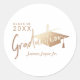 Trendy White and Gold Graduation Party Favors Stickers Featuring Graduate Cap and stylish calligraphy script in gold metallic faux foil. White Clean Background, customizable in any color.