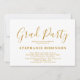 Yes, you can print on the back of your invitation for free! Most designs already have a corresponding design on the back that can be personalized using the Design Tool and going to Layers. This is a great way to communicate more information or further personalize your Modern Simple Gold Script Graduation Party Invitation. The option is really up to you.