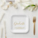 These modern, elegant stylish graduation party paper plates feature graduate in a beautiful and eye catching gold script typography. Personalize this product by adding the name and class or year and school or your favorite quote. Classy and easy to personalize! Celebrate the graduate's accomplishment in style with this trendy graduation party supply. Congratulations!
