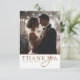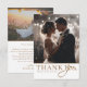 Celebrate your special day with this elegant wedding thank you card featuring a crisp white background and shimmering gold coloured text. This customizable design lets you add two of your favorite wedding photos along with your own personal message. The gold-on-white palette creates a timeless and sophisticated look, perfect for classic, minimalist, or contemporary wedding styles. It’s a beautiful way to thank your guests and create a keepsake they’ll cherish.