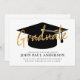 Modern Glam Classic Graduate Elegant Script Calligraphy Graduation Grad Cap Black Gold Non Photo Graduation Announcement