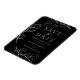 Modern minimalist eucalyptus leaves black and white unique artist created wedding save the date invitation magnet to remind friends and family to keep the date free. Beautiful simple foliage, stylish minimalistic greenery line art drawing with white elegant typography script on a black background. A simplistic botanical design that is easy to personalize using the easy to use template. Original artwork by artist Catherine Sweetman