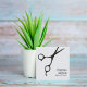 Minimalist customizable business card template with light grey background and cool black scissors icon. Modern and cool design. Perfect for hair stylist, hairdresser or hair salons.