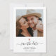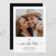 Simple minimalist Save the Date Card with pretty printed rose gold heart under your favorite engagement photo. Trendy modern script calligraphy reading Save the Date over formal wedding details. Let your love shine with this updated classic!